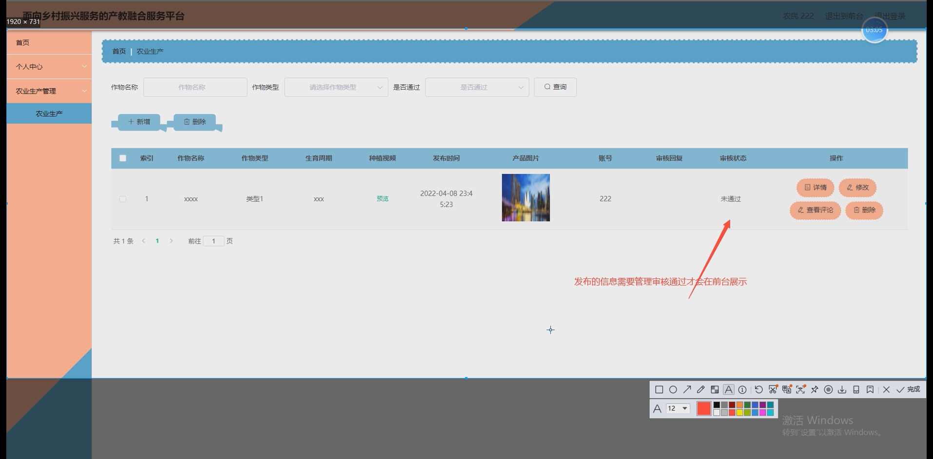 - 农业生产模块:发布农业生产技术文章、视频教程,提供病虫害防治、施肥技巧等专业指导;