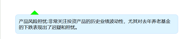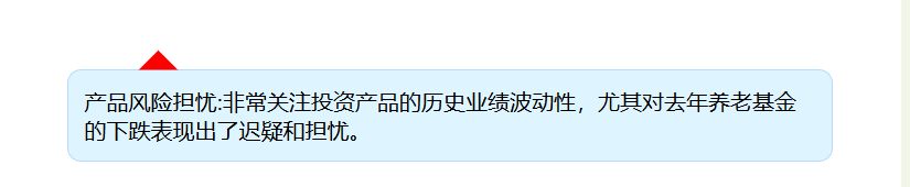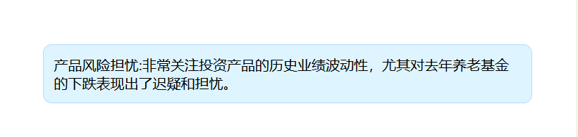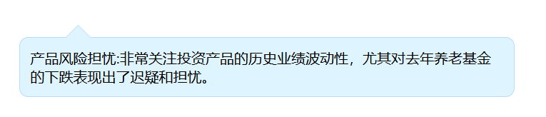 产品风险担忧:非常关注投资产品的历史业绩波动性,尤其对去年养老基金的下跌表现出了迟疑和担忧。