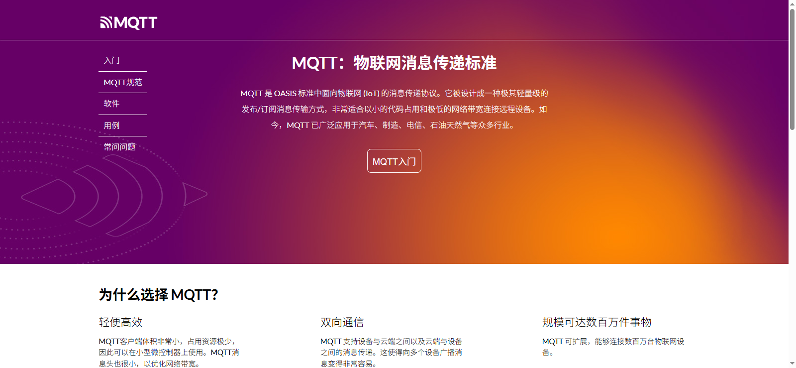 MQTT 是 OASIS 标准中面向物联网 (IoT) 的消息传递协议,它被设计成一种极其轻量级的发布/订阅消息传输方式,非常适合以小的代码占用和极低的网络带宽连接远程设备。如今,MQTT 已广泛应用于汽车、制造、电信、石油天然气等众多行业,是物联网消息传递标准。