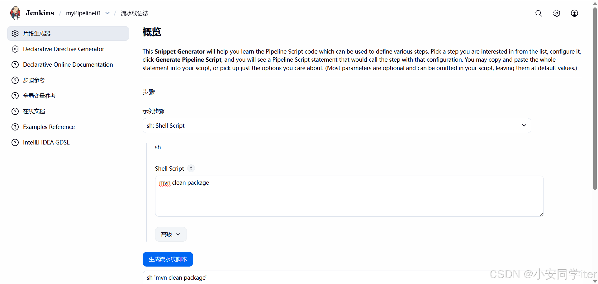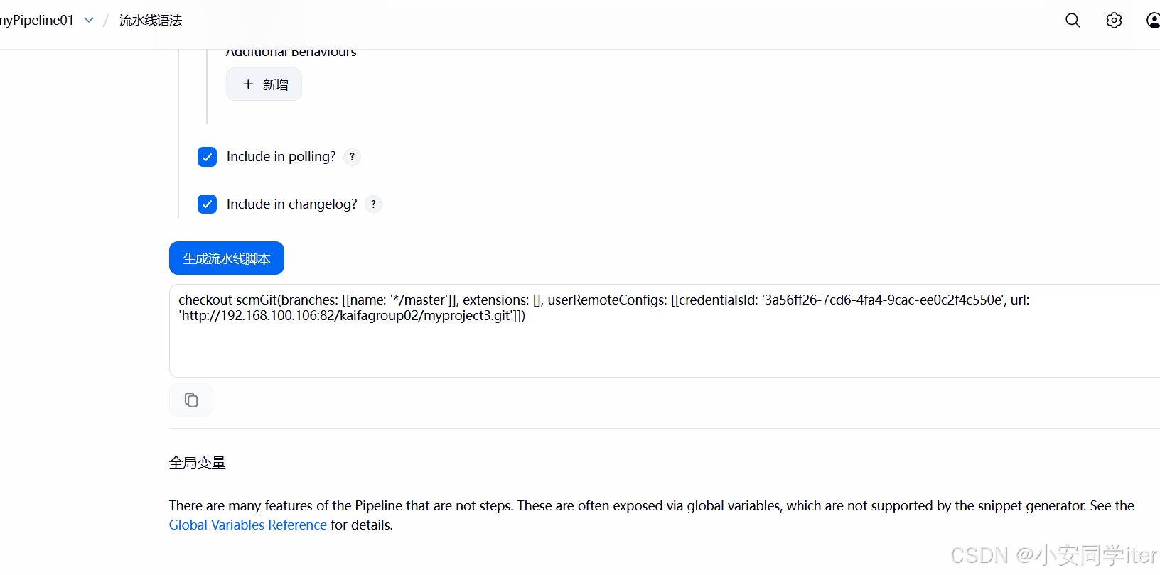 接下来到里面的片段生成器选择拉取代码,生成对应的脚本文件