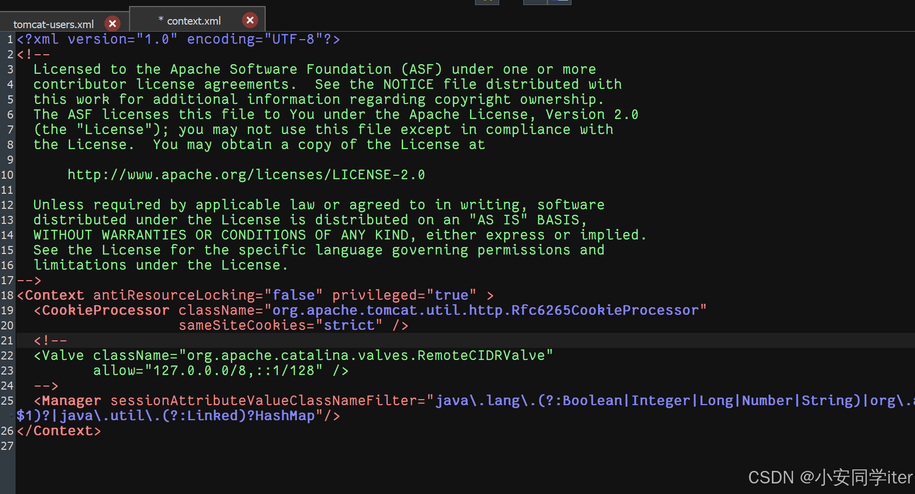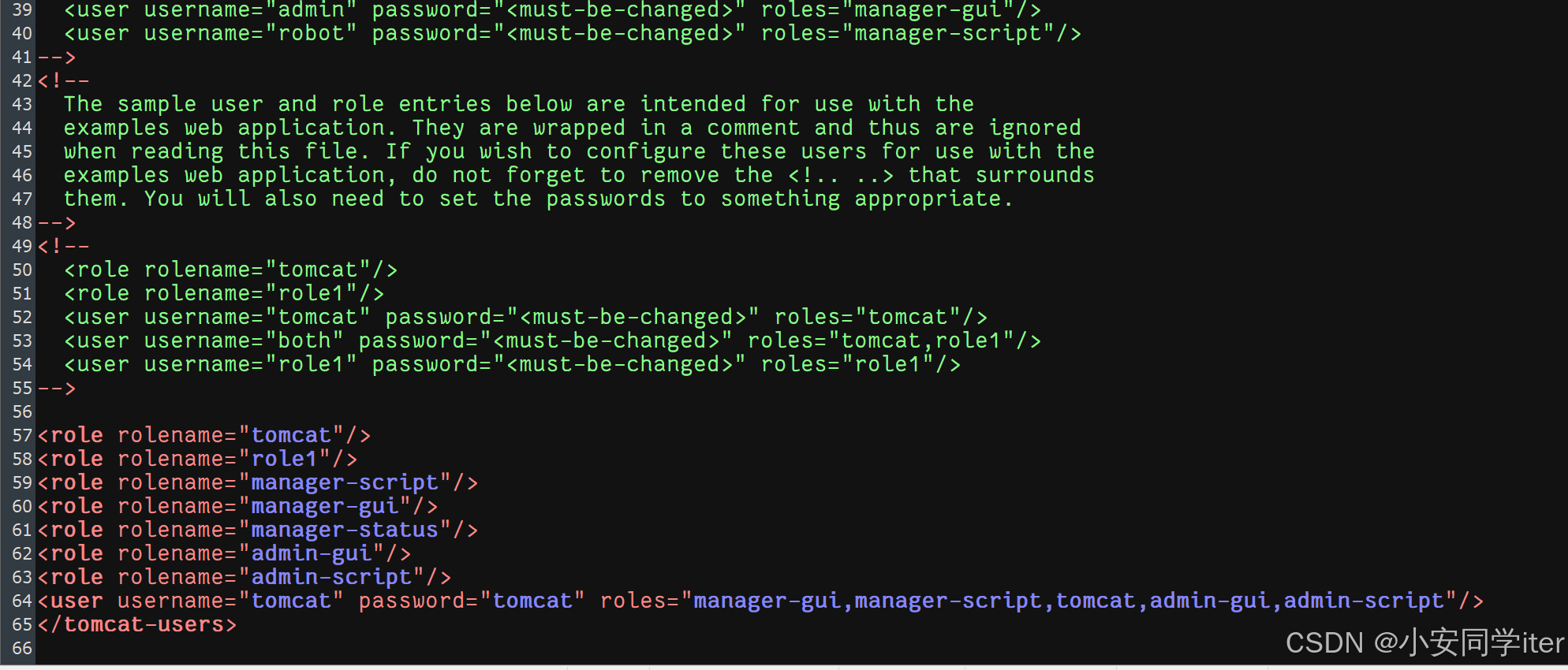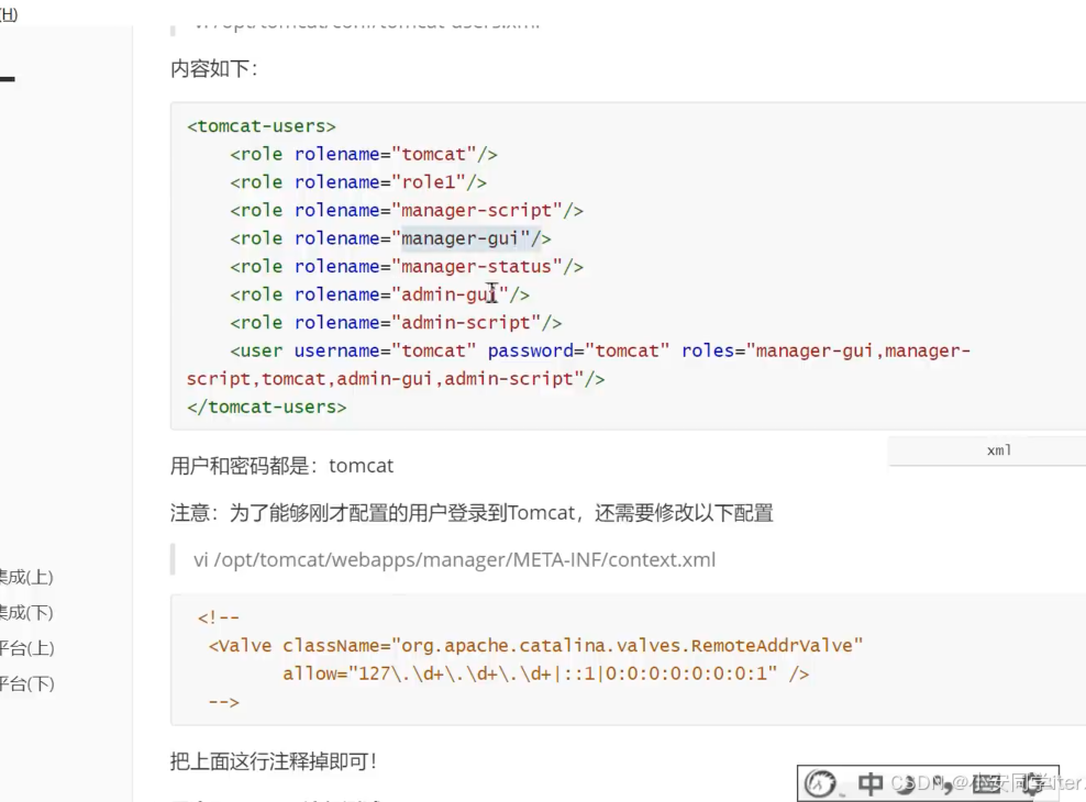 现在为了远程访问,需要去配置tomcat的角色,但是我这里全都放在一个105了,要不然太多了,可能电脑跑不动了,先去userxml当中