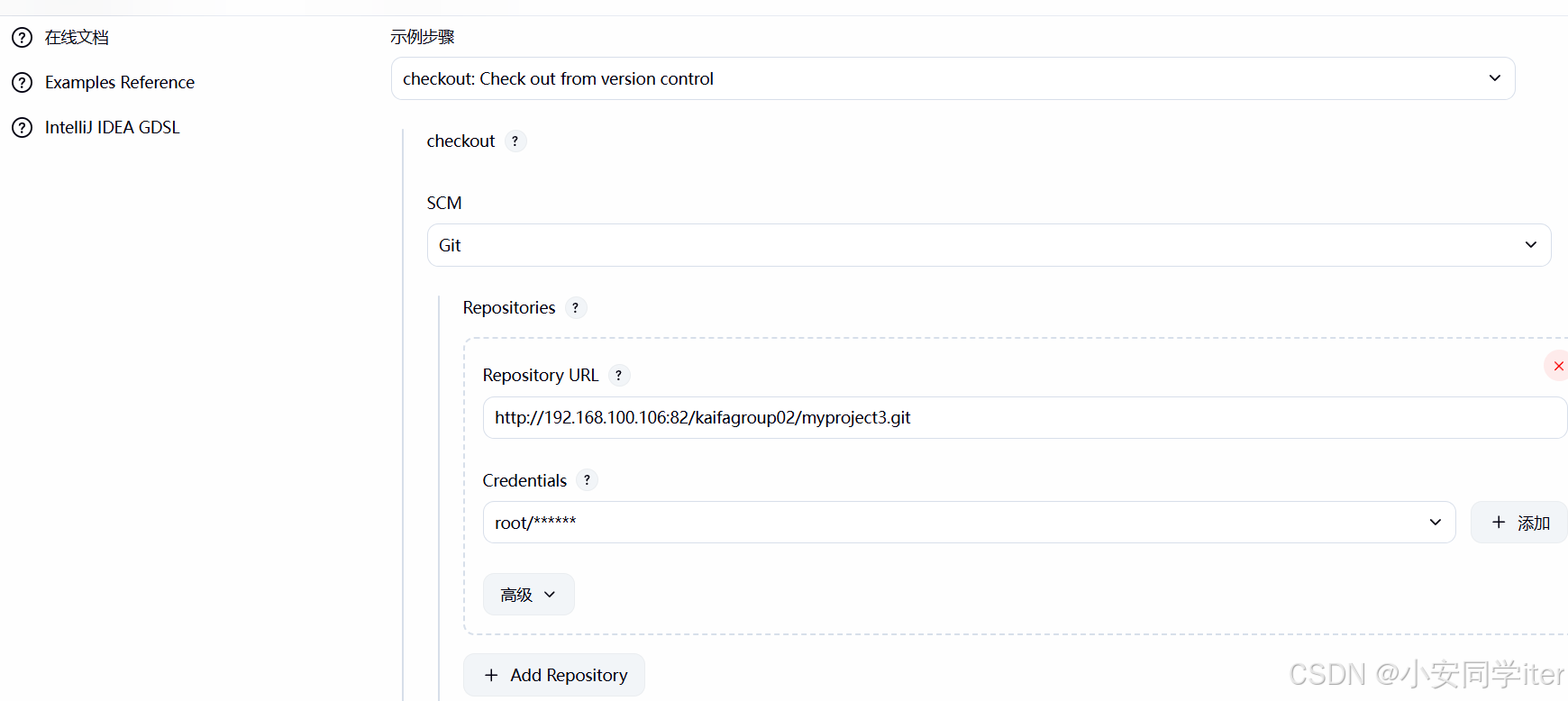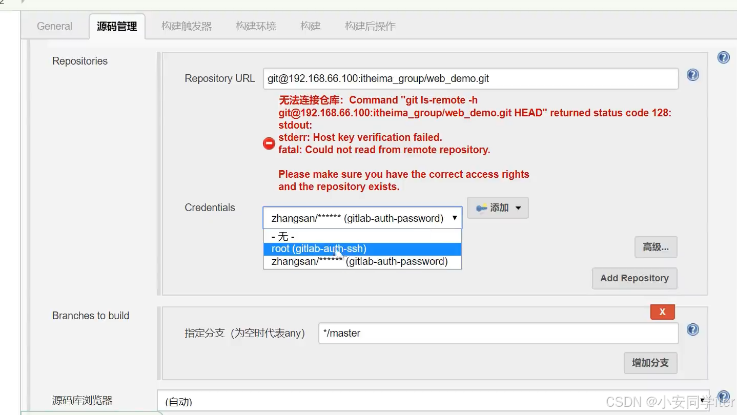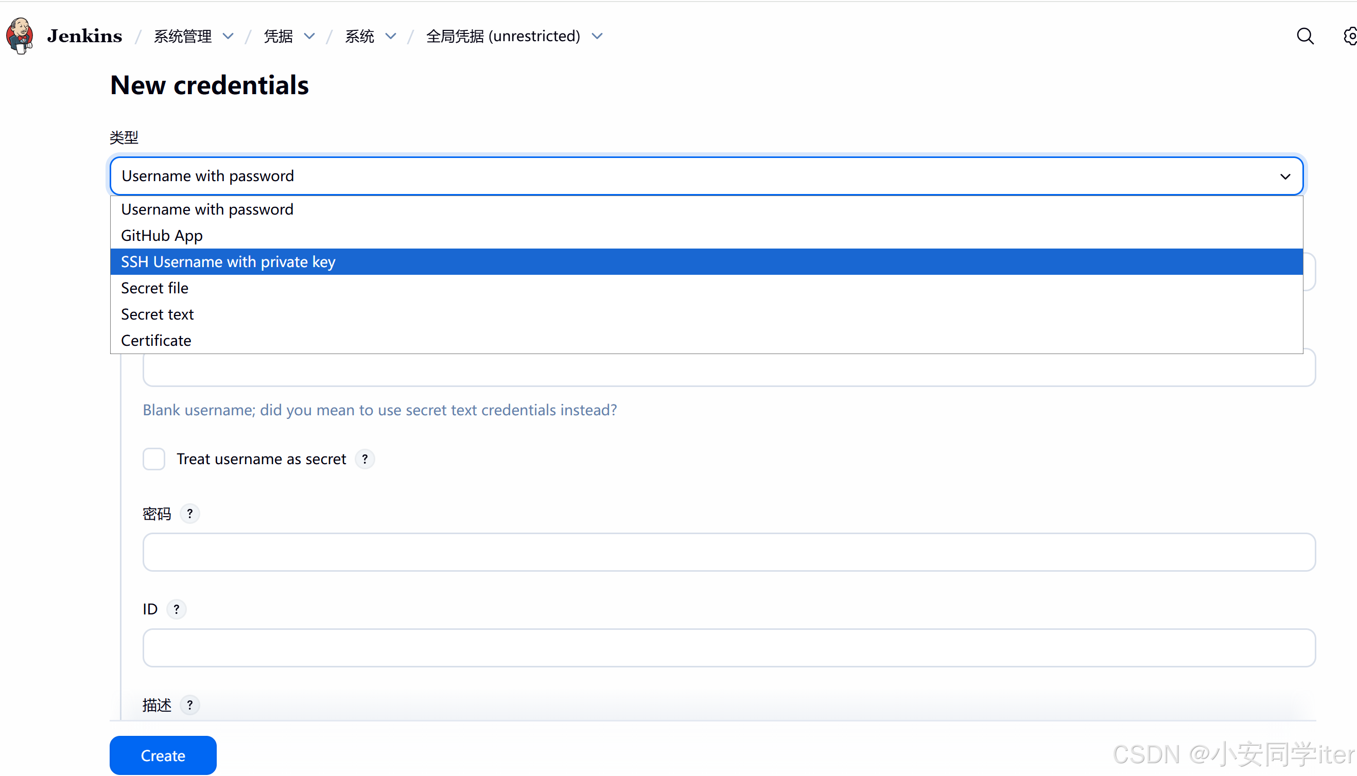 这个凭证如果说在创建凭据的时候初始化的为userName与password那么这个凭证在添加时就是对应的账号与密码,但是还有ssh/http/secret等方式