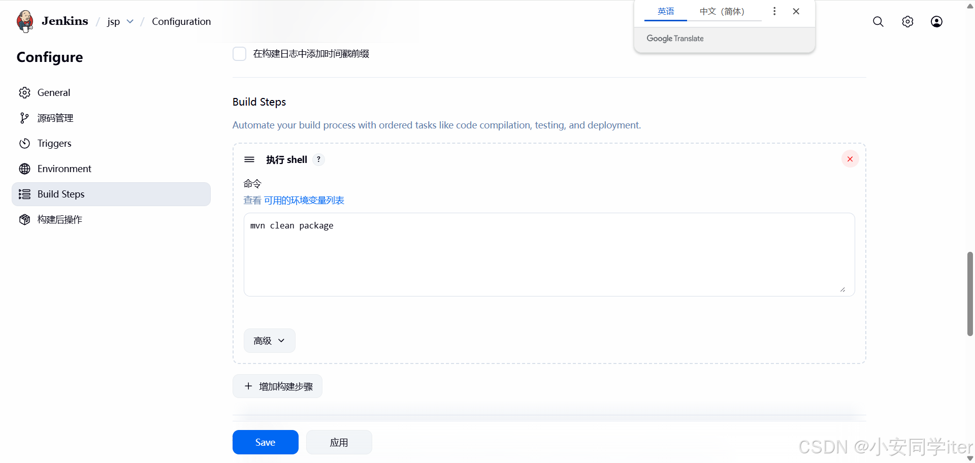 对应的代码管理构建当中去添加构建步骤,添加shell脚本