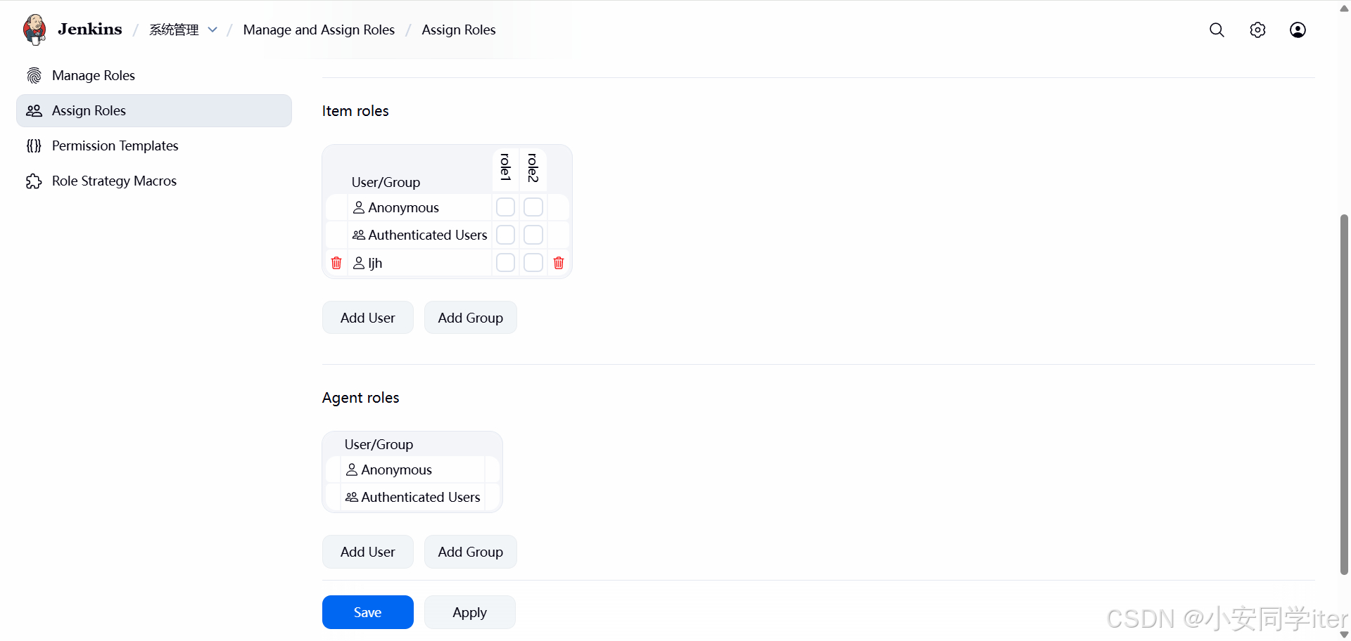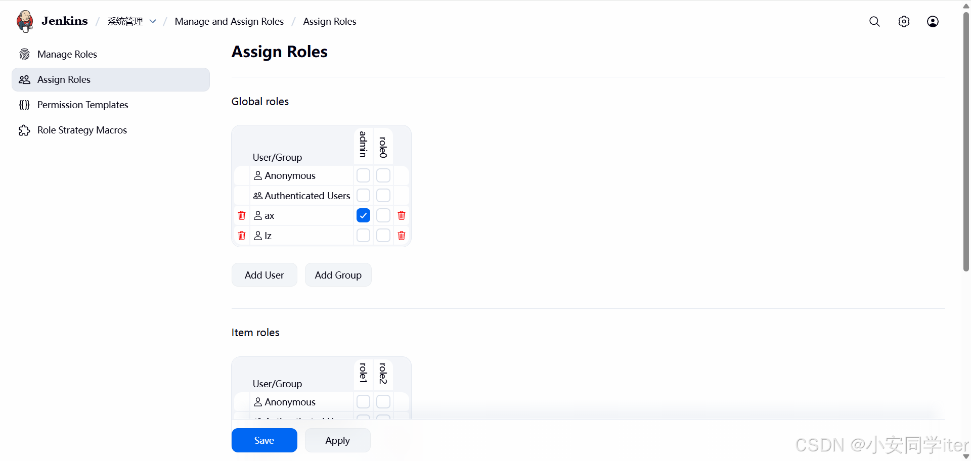 权限的一个整体的理解为,首先jenkins用户账号是最终权限的授予者,而对应,我们需要去设置不同的权限分组进行区分,比如说全局的权限,项目的权限,组别的权限都可以去自定义,从而实现灵活的设置权限分组。