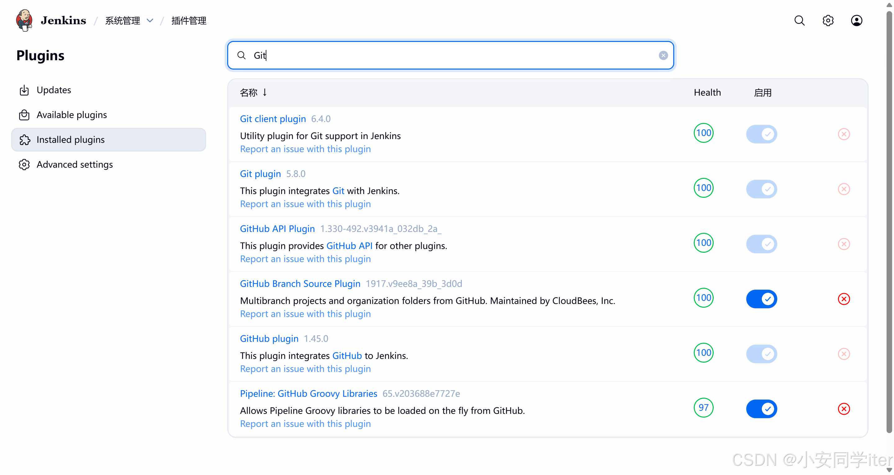 我们还需要在jenkins当中的插件当中去安装git的插件,同时还需要在对应的服务器当中安装Git工具