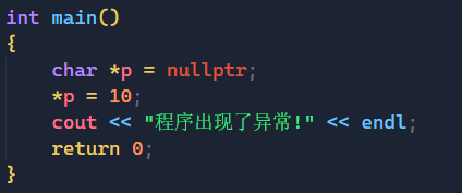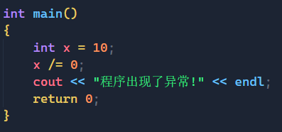 cout << "程序出现了异常!" << endl;