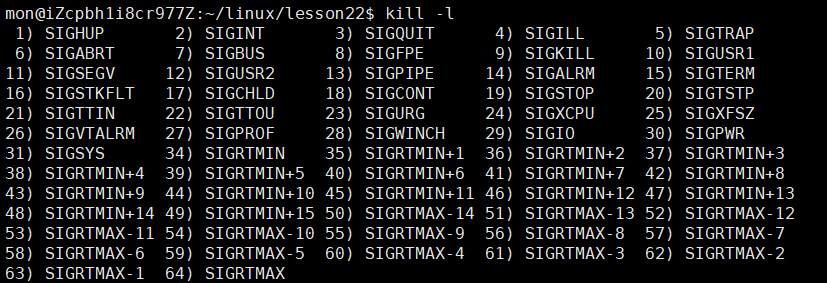 通过kill -l命令所打印出的这些就是linux中常用和标准的信号分类,这张图呢我们在之前的篇章中也展示过,那么我问大家一个问题:上图中共有几种信号呢?
