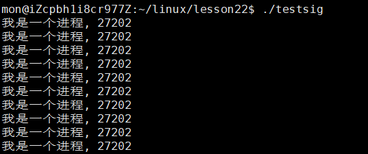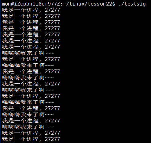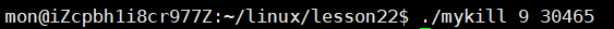 我们仔细一想好像还真是这样,因为大部分信号的默认处理动作都是终止进程,但是我们通过signal函数将默认动作修改为自定义捕捉或者忽略信号,按理说确实无法终结这个进程了,那么事实真是如此吗?我们用一个例子来看看: