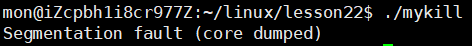而如果是野指针操作,同样也是程序没有执行完就终止了,我们看到报的错就是Segmentation fault,也就是段错误,那这个信号又是谁呢?我们接着看: