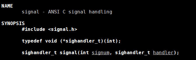 而第二个参数,它就表示新的动作,它的类型在上图中也有介绍,是一个函数指针,返回值是void,参数是只有一个并且是int类型,这个类型主要针对的就是第三种处理方式,也就是自定义捕捉,而对于前面两种处理方式则会传不同的参数。