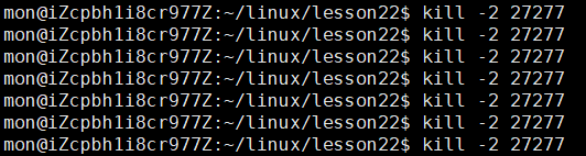 我们把上面的两种情况一起来看,我们只是对信号进行了自定义构造,并没有循环操作,但是从结果中我们可以看到进程一直在捕捉同一个信号,与之前的自定义构造的现象并不相同,这是为什么呢?
