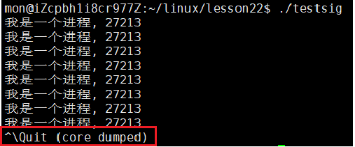 只要进程一直存在,那么它就会在进程的调度队列中,也就会被重新调度,而一被调度就会报错,报错就给进程发信号,但是又解决不掉,下次又会接着报错,周而复始,所以上面的进程才会一直接收同一个信号,因为操作系统给它一直发啊。