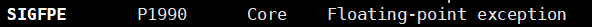 如果是\0操作我们看到程序并没有执行完就终止了,报的错误是Floating point exception,我们通过对比信号表可以发现,这个信号就是: