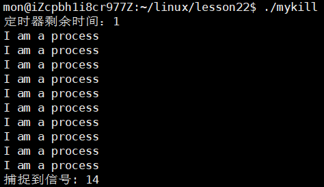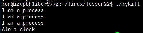 这两点在上面的例子中都体现了出来,当设置了新的10s的定时器后,alarm函数的返回值就是上面3s定时器的剩余时间,而在下面的while循环执行了10次,也就是10s过后,才向进程发送了信号。