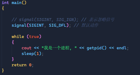 // signal(SIGINT, SIG_IGN); // 表示忽略信号