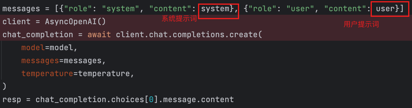 在调用大模型的时候,会将 PR 信息填充到提示词模板中。将全部的提示词发送给大模型,以获取响应结果。如下所示: