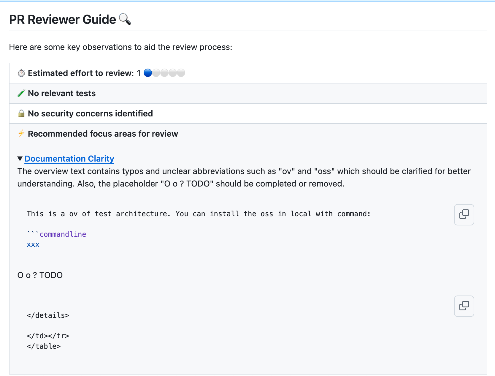 执行结束后会在你的 PR 下面添加 review 的评论,下面是一个示例: