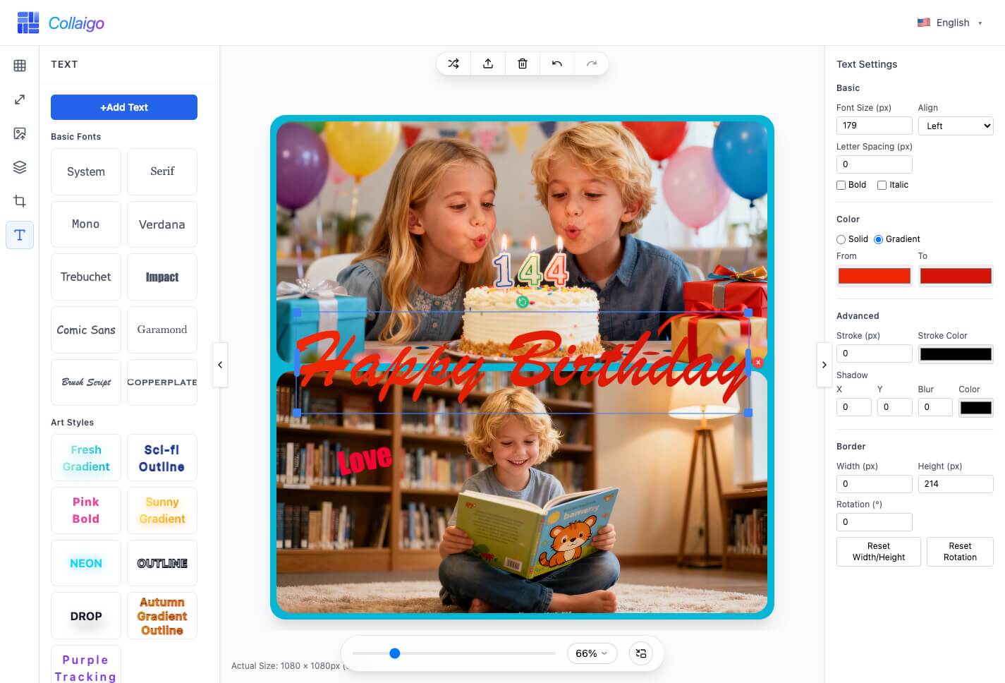 - 实时编辑:选中文本后,右侧面板会显示所有编辑选项,实时预览效果