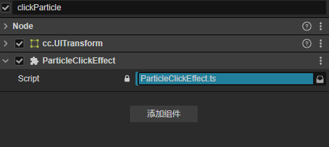 - 添加ParticleClickEffect.ts组件到粒子管理节点