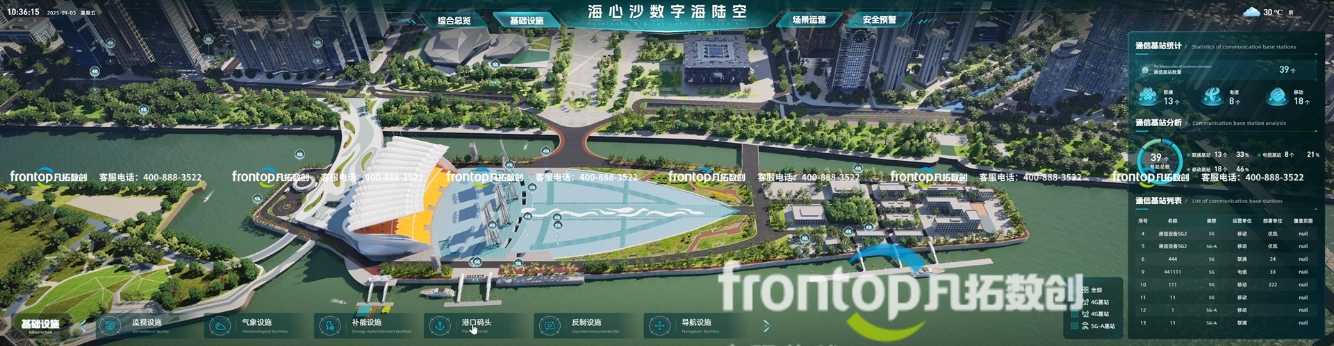 海心沙作为广州城市新中轴线的核心区域,其智慧化升级是数字孪生技术在智慧城市领域的典型应用。凡拓数创依托自主研发的FTE数字孪生引擎和Funcity三维城市编辑平台,为海心沙构建了高精度数字孪生模型,实现了从单体建筑到整体区域的全程可视化管理 。该平台深度融合物联网感知设备、BIM建筑信息模型和实时动态数据,成功打通了地下管廊、交通枢纽、商业综合体及生态景观的多维信息壁垒 。