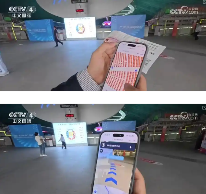在场馆内部,智能服务 覆盖了从观赛到应急的各个环节。AR导览系统 解决了大型场馆内"找路难"的问题。观众只需打开"全运广州"小程序,输入座位号,便可启动AR实景导航,系统将引导用户从场外入口直达座位区域,全程定位误差不超过1.57米 。