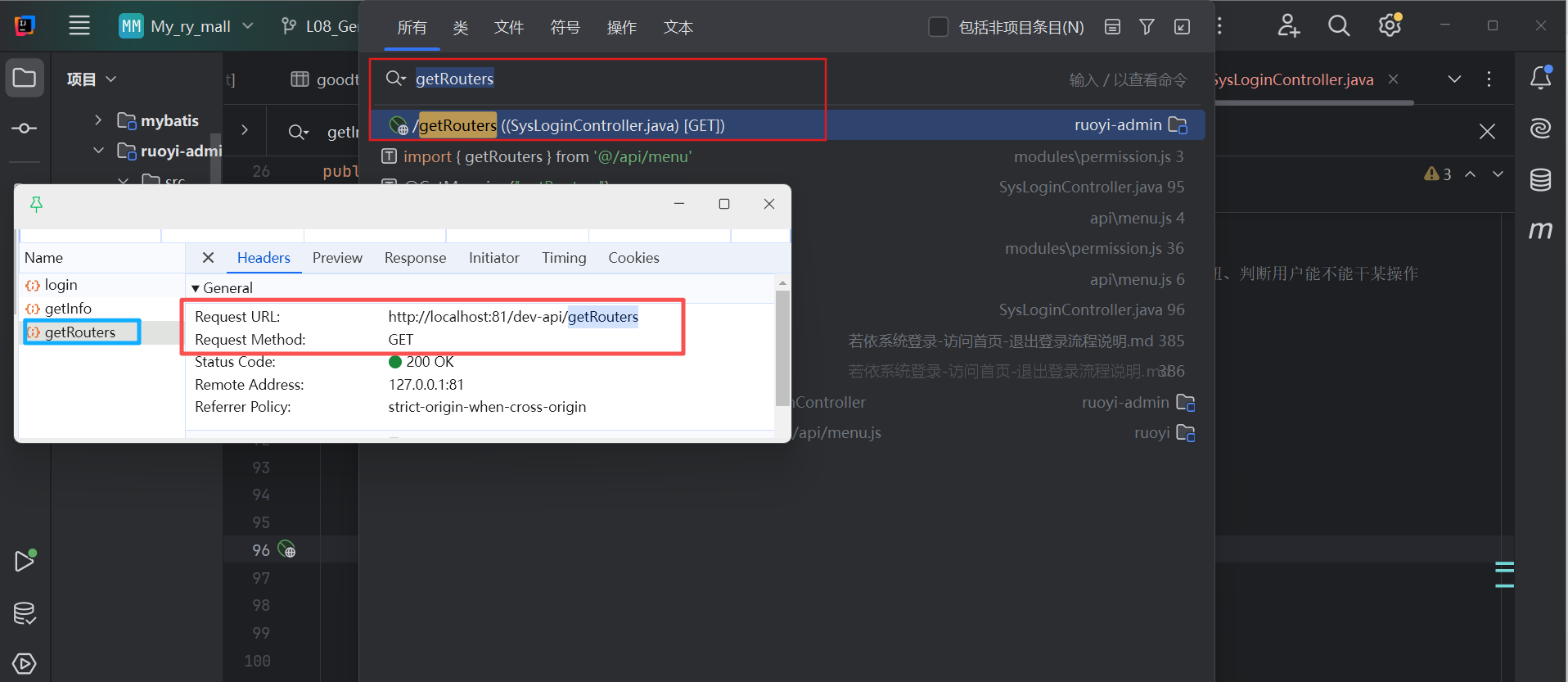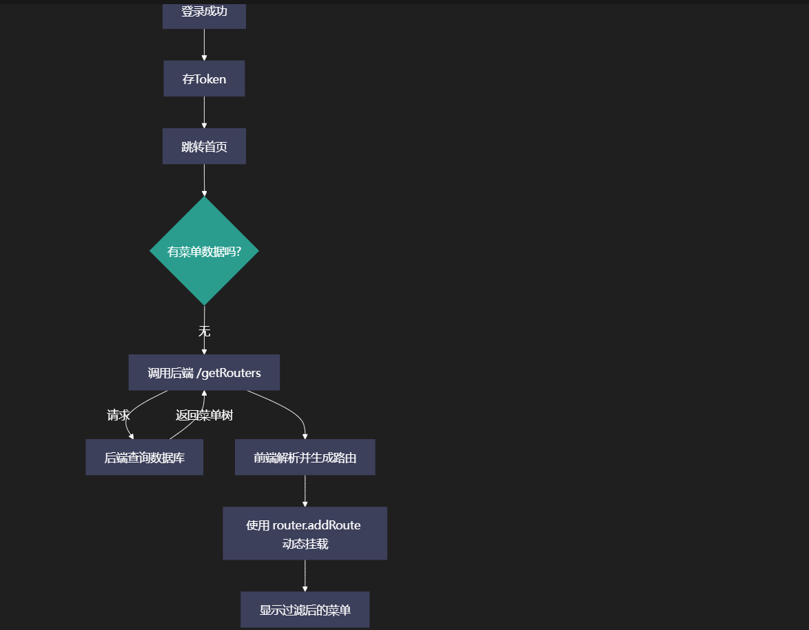/getRouters接口(动态路由) - 但最终渲染时,会过滤掉没有权限的菜单项