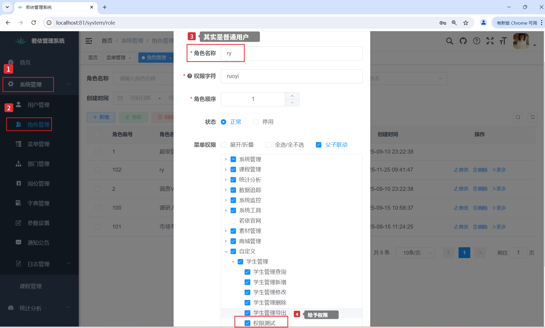 | 3️⃣ 前端 | 分配角色权限 | 普通角色勾选该按钮 |
