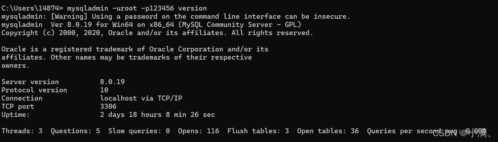 MySQL 管理工具,用于检查服务器状态、创建/删除数据库等。