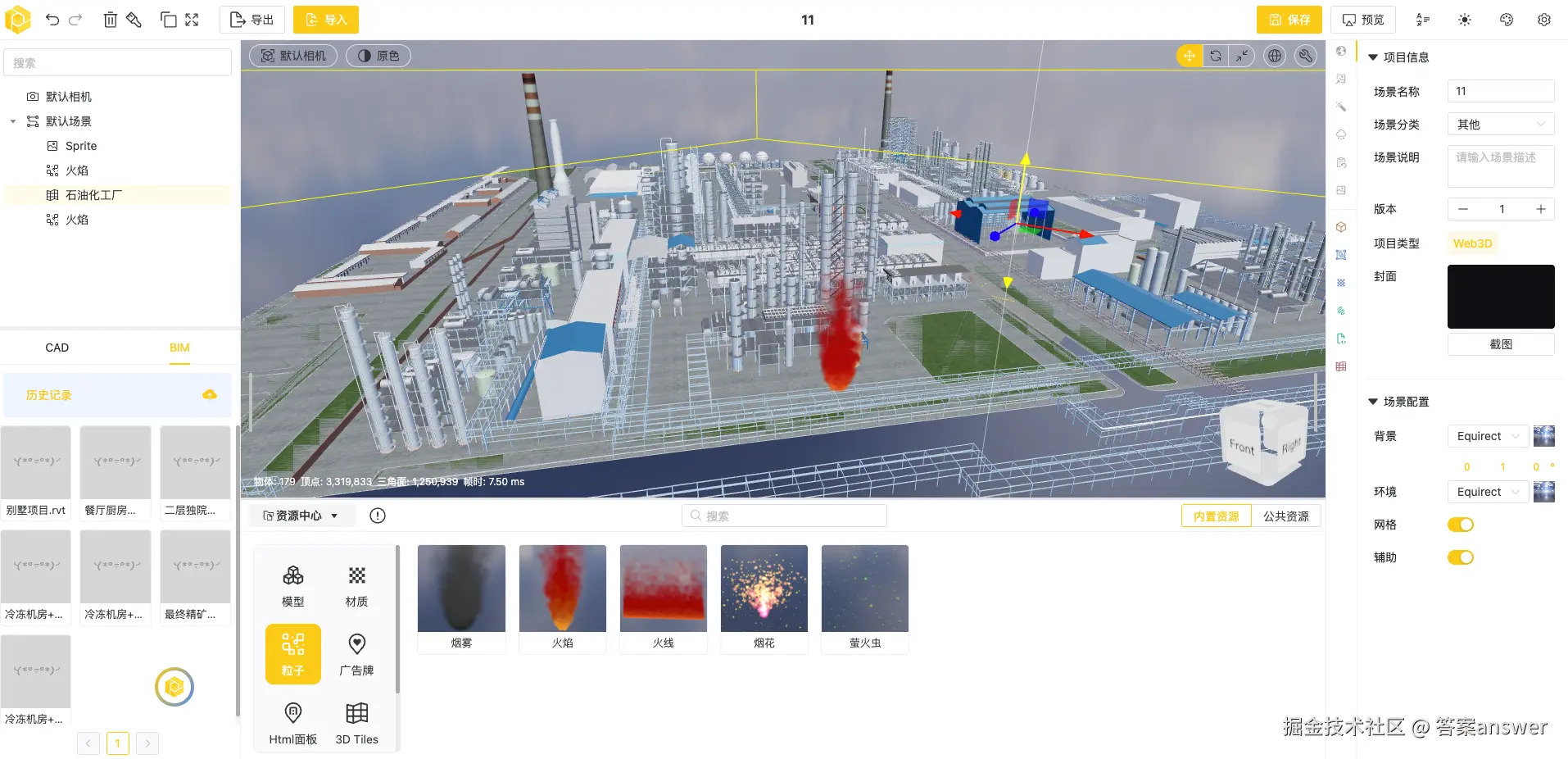 描述:基于Vue3 + THREE.JS 免费开源的三维引擎及配套编辑器,包含BIM轻量化、CAD解析预览、粒子系统、插件系统等功能。
