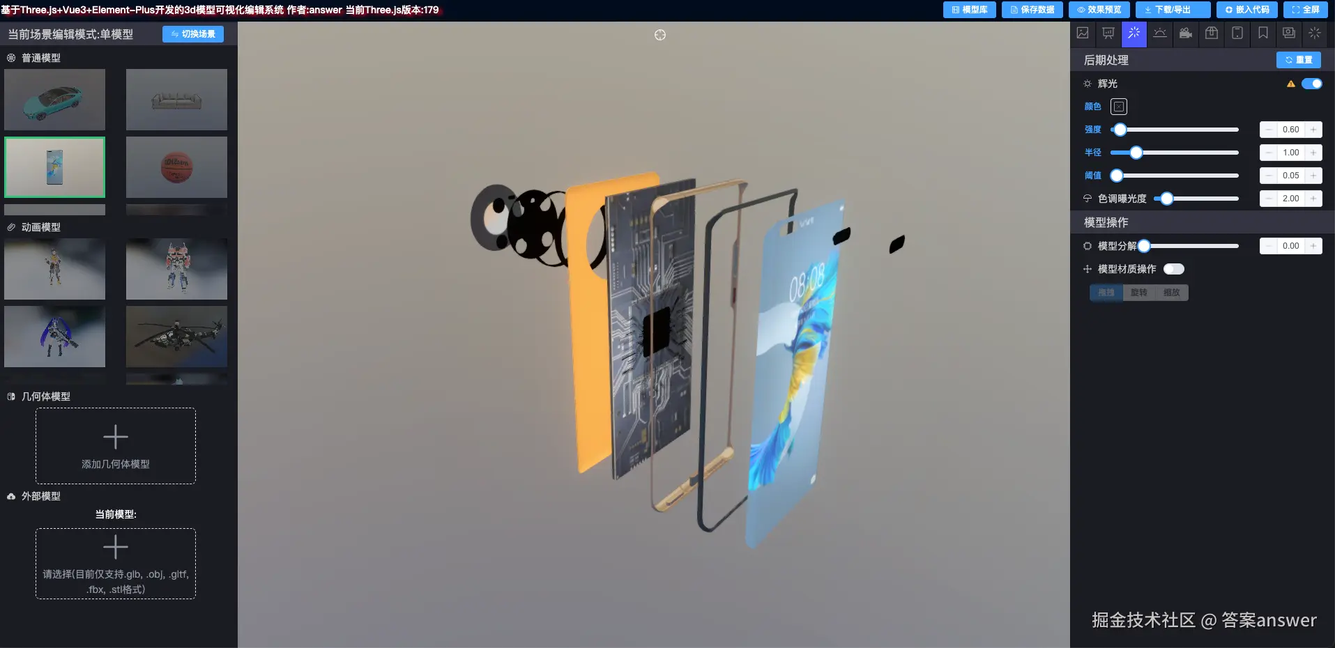 描述 :一个基于 Three.js + Vue 3 + TypeScript + Pinia 的前端 3D 模型编辑器 / 可视化编辑平台