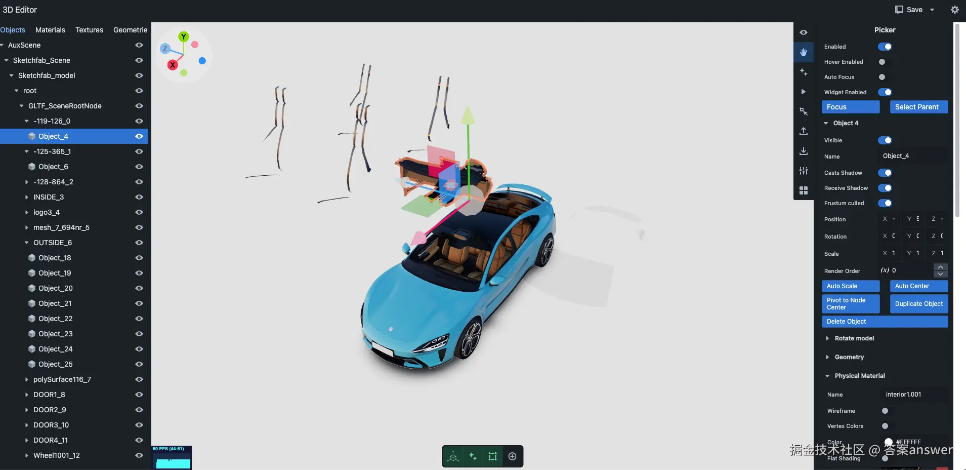 特点:项目基于了Three.js进行了二次封装,提供了不少高级功能,使其适合从简单 3D 模型预览到复杂 交互 / 渲染应用,通过简单的API 使用就可以快速创建复杂的3D模型预览器,模型编辑器等内容。