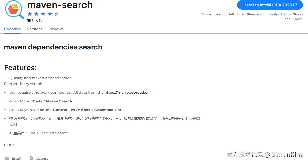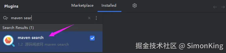 直接在 IDEA 的插件市场(Plugins)中搜索 "Maven Search" 并安装即可。