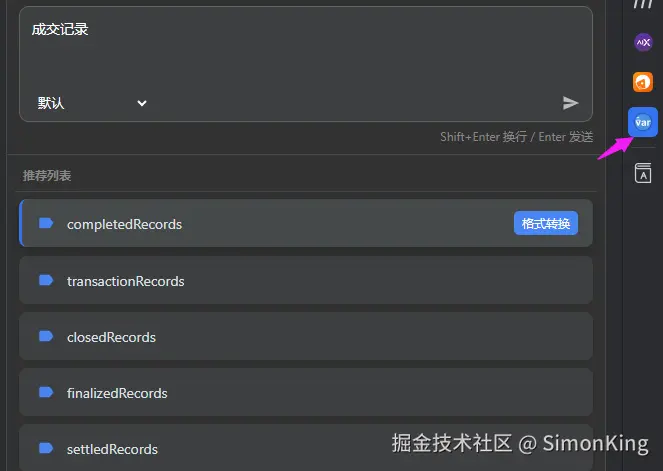 安装完之后,就会出现var这样的图标。点开之后,就可以输入变量,回车即可查看结果。