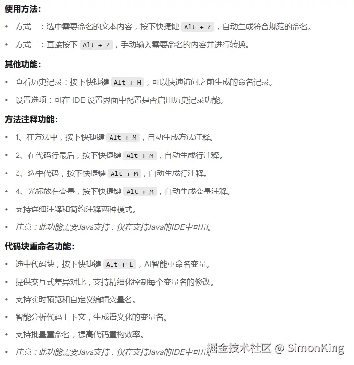 除了命名之后,还可以生成方法的注释等。其他的使用方式,详见插件的使用说明:
