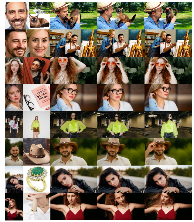 阶段 4 利用最先进的图像生成模型生成人脸与物体参考的增强版本,引入在姿态、外观和上下文方面的变化。背景图像也会进行增强,以丰富参考集合。