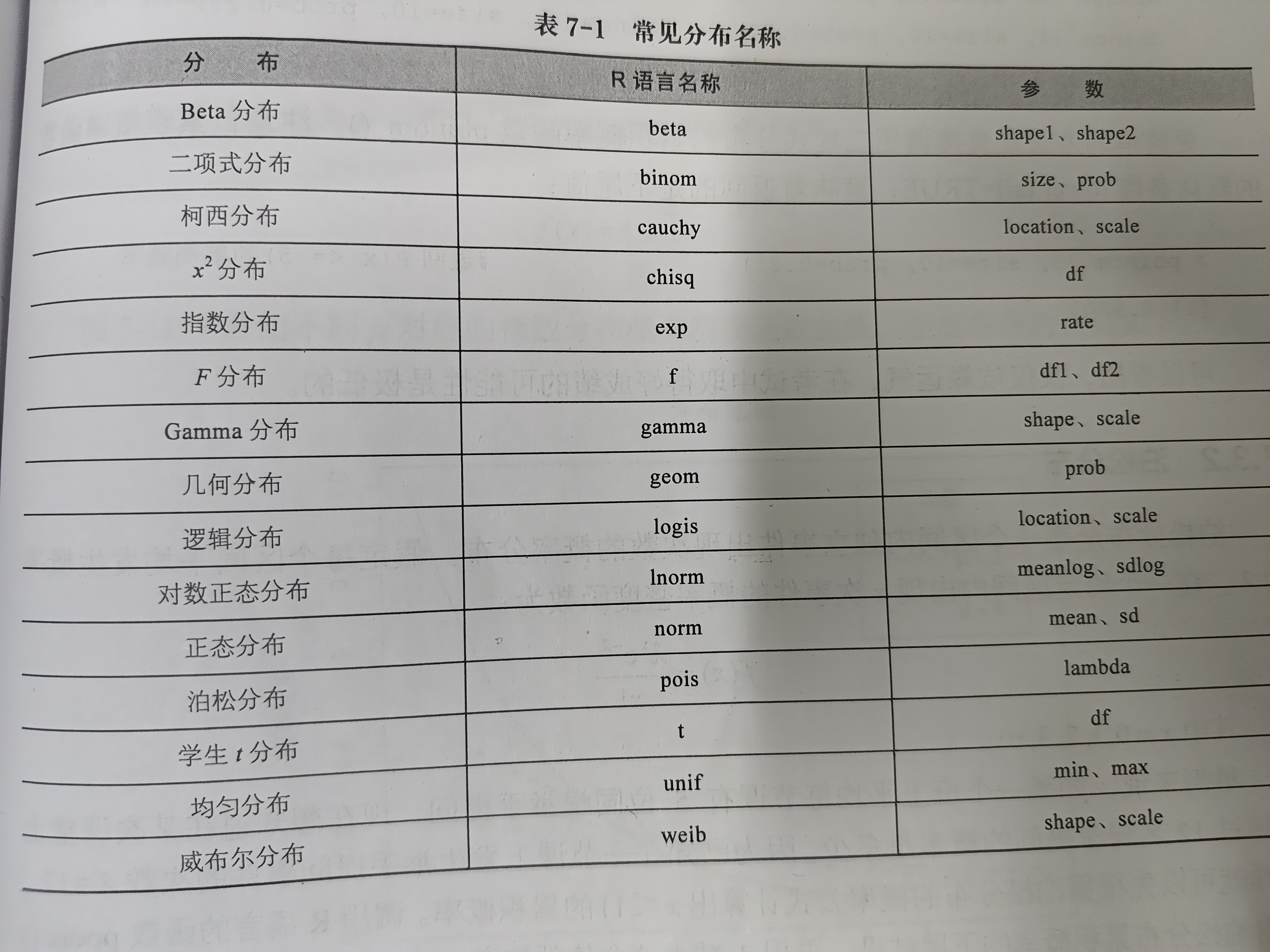 可以配合许多函数使用,如正态分布norm、t分布t、卡方分布chisq、F分布f等