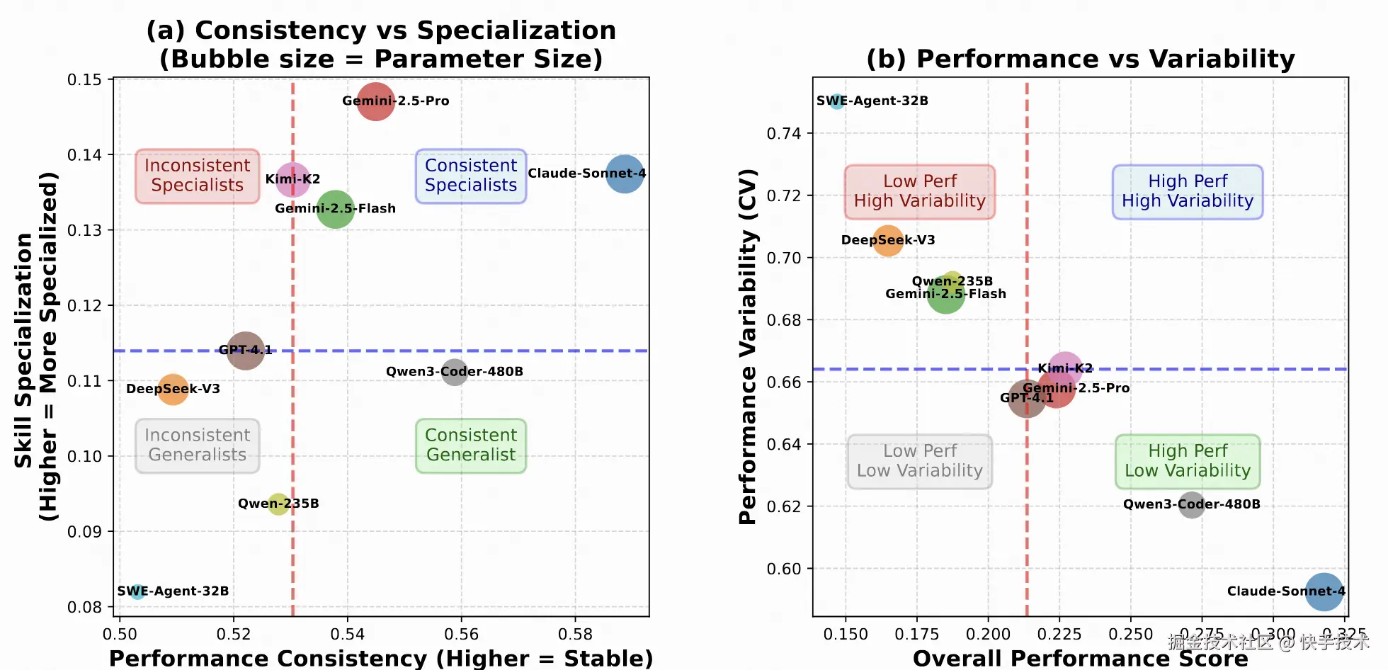 图 8: 不同模型在 SWE-Compass 上语言倾向性与性能稳定性分析
