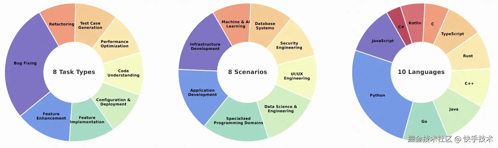 图 3: 任务类型、编程场景和语言的分布