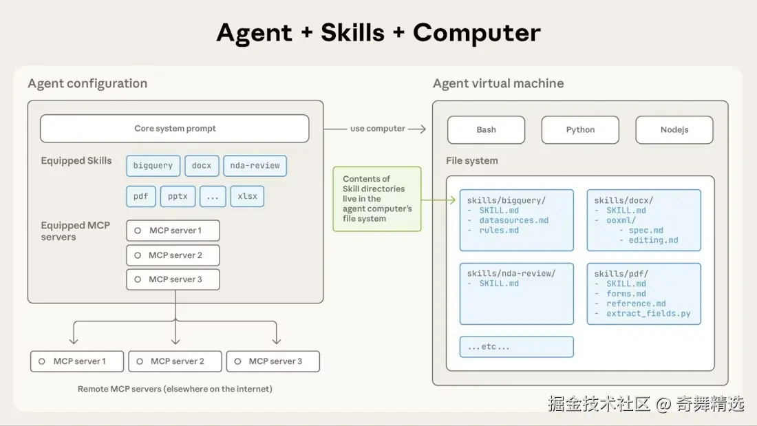 最近我花了些时间深入研究 Skills,查阅官方文档,看了些 Youtube 视频,动手写了几个示例。结论是它没有某些 KOL 吹得那么神,但确实有其独到之处。而这背后,潜藏着 Anthropic 试图在 MCP 后进一步标准化 LLM 应用的野心。