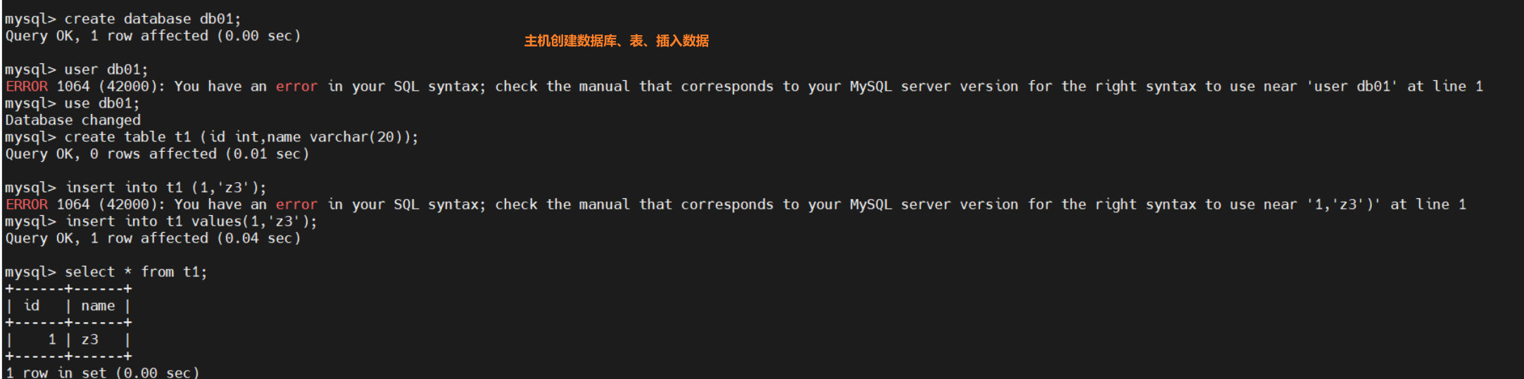 change master to master_host='宿主机IP', master_user='slave', master_password='123456',master_port=3307,master_log_file='mall-mysql-bin.000001',master_log_pos=617,master_connect_retry=30;