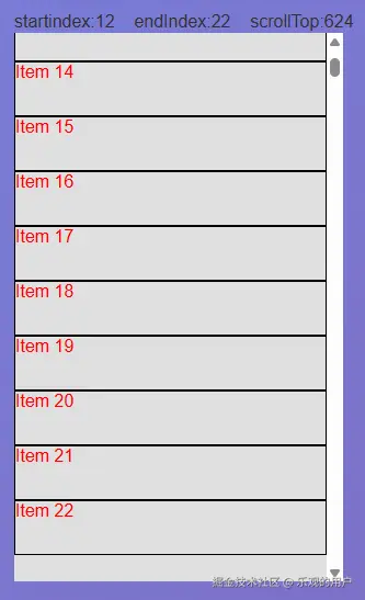 这个代码很基础,我们可以把它运用到业务场景中,封装一个组件,或者把计算逻辑抽离出hooks,还有可以改为动态高度的版本,并且滚动事件应该添加防抖。有些地方可以更为精简,但是为了一些好兄弟能看的更明白所以这样写了。 代码中还隐藏了一些bug,老伙子们如果发现了可以给我留言,因为第一次写这么长的文章,文中如果有些逻辑不严谨或者错误、还有可以有优化的地方,也欢迎留言指正一起交流。
