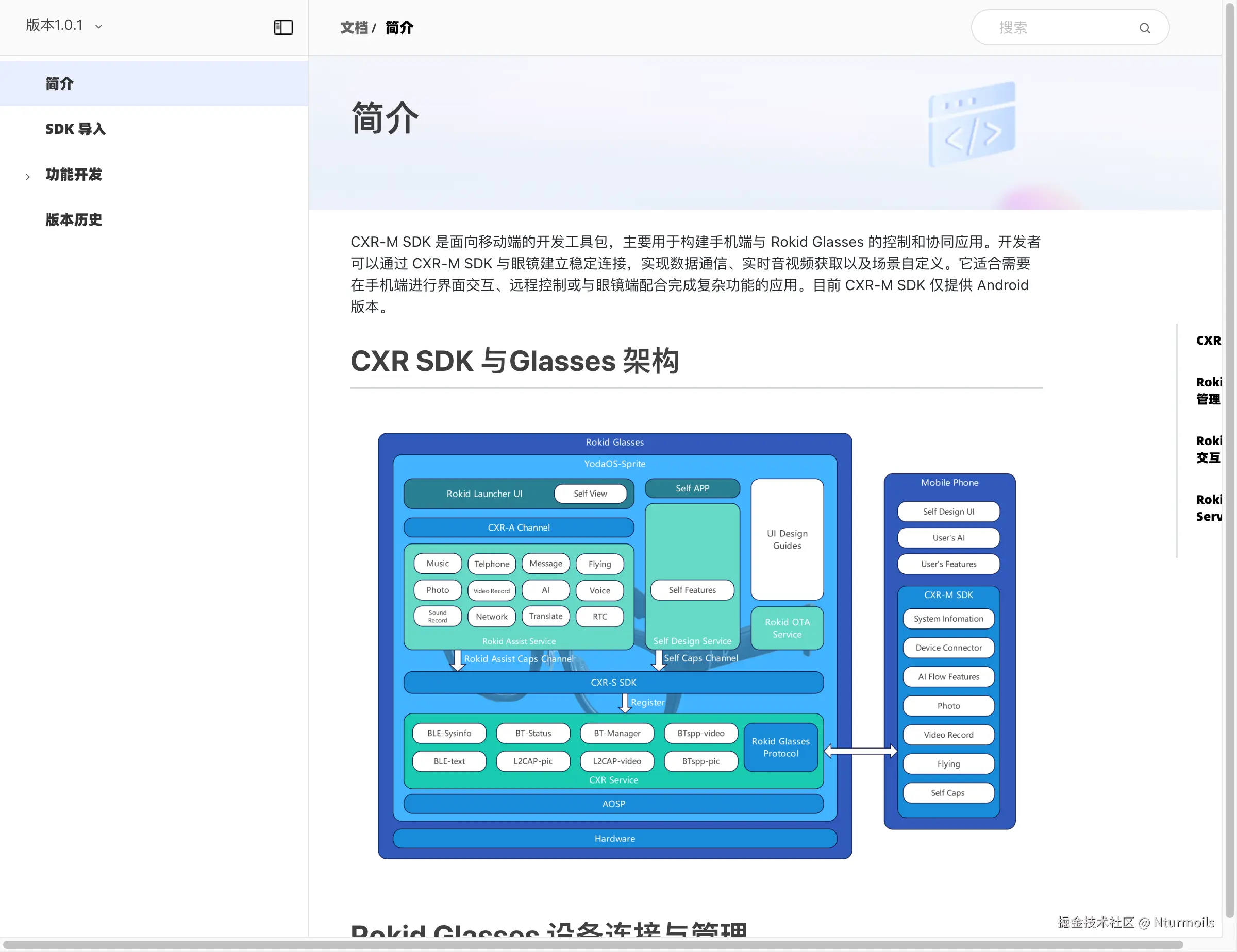 根据Rokid官方文档,CXR-M SDK是面向移动端的开发工具包,主要用于构建手机端与Rokid Glasses的控制和协同应用。我用的版本是v1.0.1(2025年8月25日更新)。