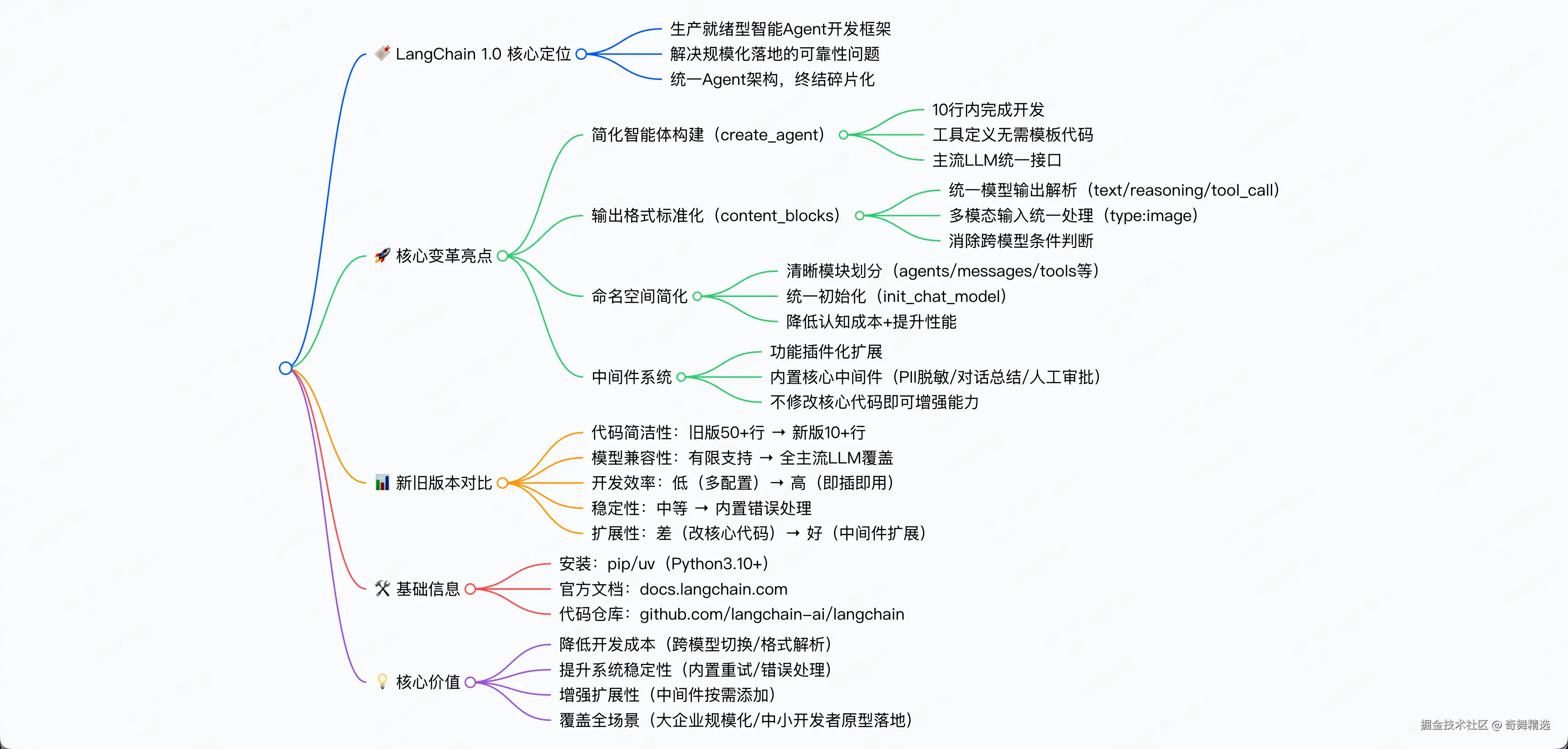 当大语言模型(LLM)的应用从原型验证走向规模化落地,开发人员面临的核心痛点已从"能否实现"转变为"如何可靠实现"。2025年10月23日,LangChain正式发布1.0版本,这一里程碑式的更新不仅终结了此前版本中Agent架构碎片化的局面,更以"生产就绪"为核心定位,重新定义了智能Agent开发框架的技术标准。