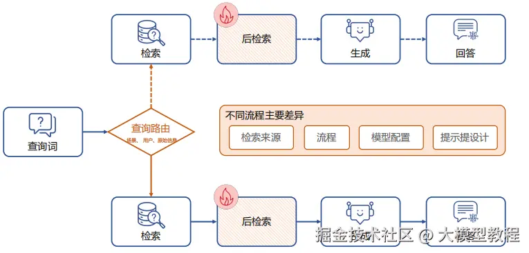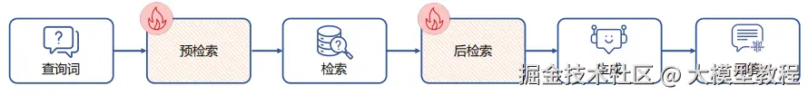 - 后检索阶段:检索结果进一步优化,通常通过排序模块对检索的结果进行调整,使得最终选出的文档最能满足生成需求。