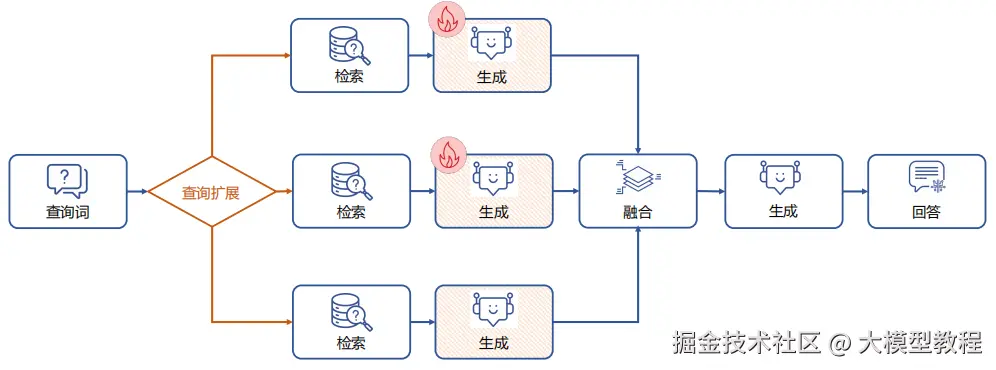 这种模式的优势在于,它能够从多个角度挖掘潜在信息,增强生成结果的覆盖度和准确性。它特别适用于需要广泛搜索和多角度生成的任务。