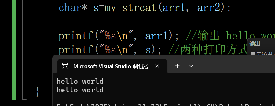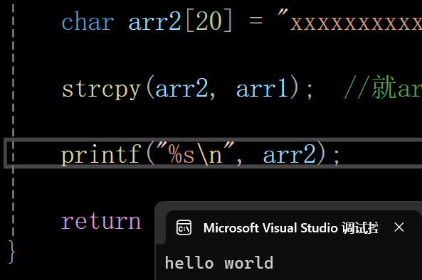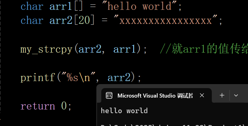 my_strcpy(arr2, arr1); //就arr1的值传给arr2里面去