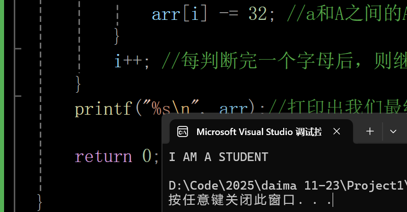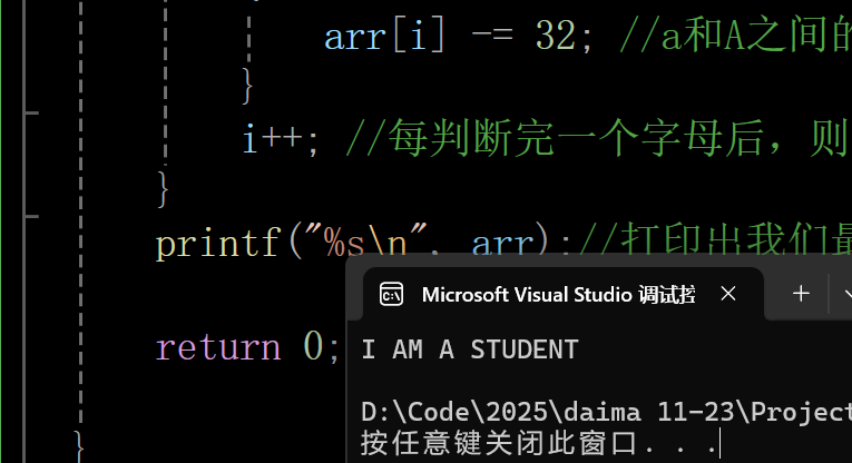 arr[i] -= 32; //a和A之间的ASCLL值差刚刚好差32,字母的小写和它对应的大写,它们的值刚刚好差32