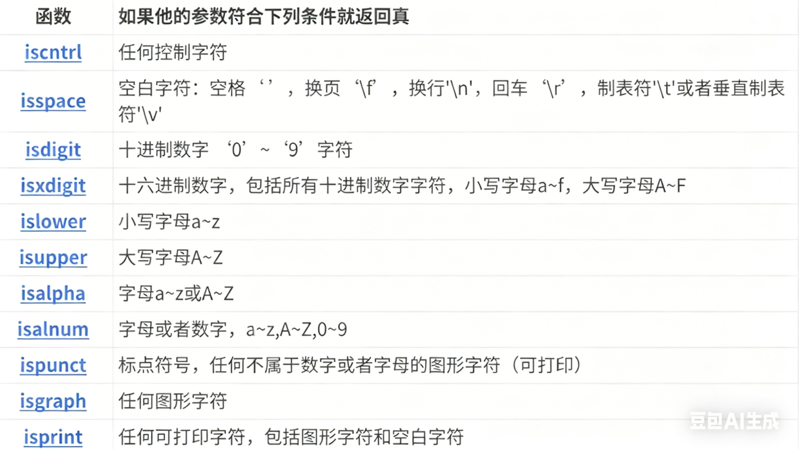 C语⾔中有⼀系列的函数是专⻔做字符分类的,也就是⼀个字符是属于什么类型的字符的。