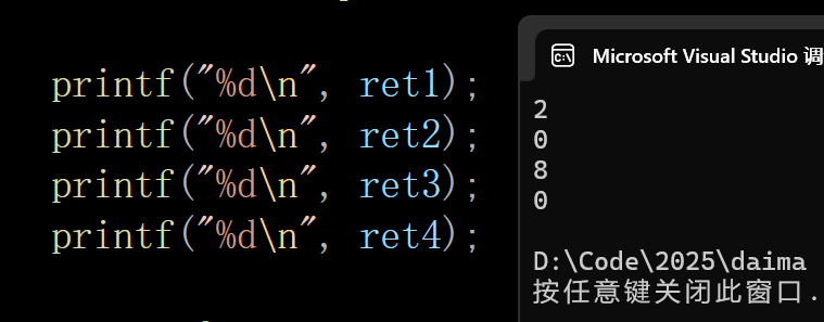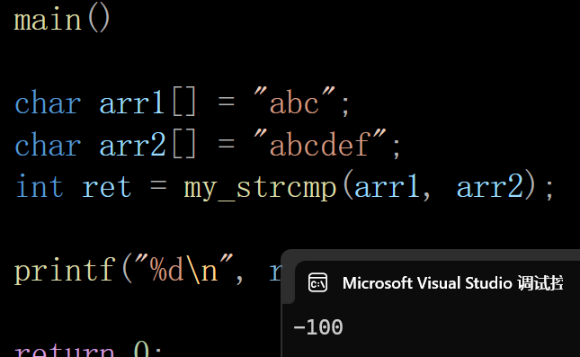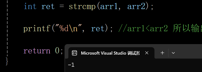 printf("%d\n", ret); //arr1<arr2 所以输出一个小于0的数,这里是-1