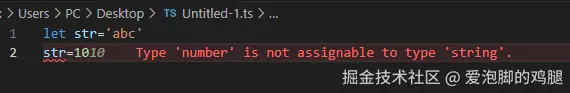 2.1 ts会以给出的变量类型初始值进行变量类型定义(ts的类型约束功能+类型推断)